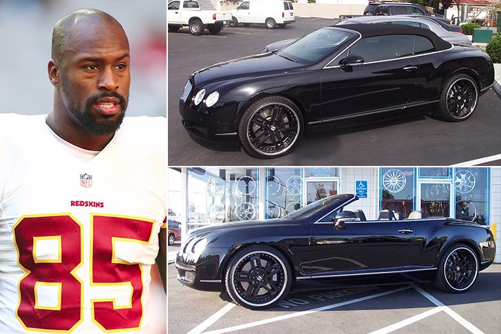 Vernon Davis has a lot of exclusive cars and matching steep car insurance. The American football tight end playing for the Washington Redskins has always been in love with luxury rides even since his college football days at Maryland. It was not surprising when he decided to upgrade his car collection with a flashy Bentley Continental GT Convertible. The car cost him $200K, and it is worth every single cent.