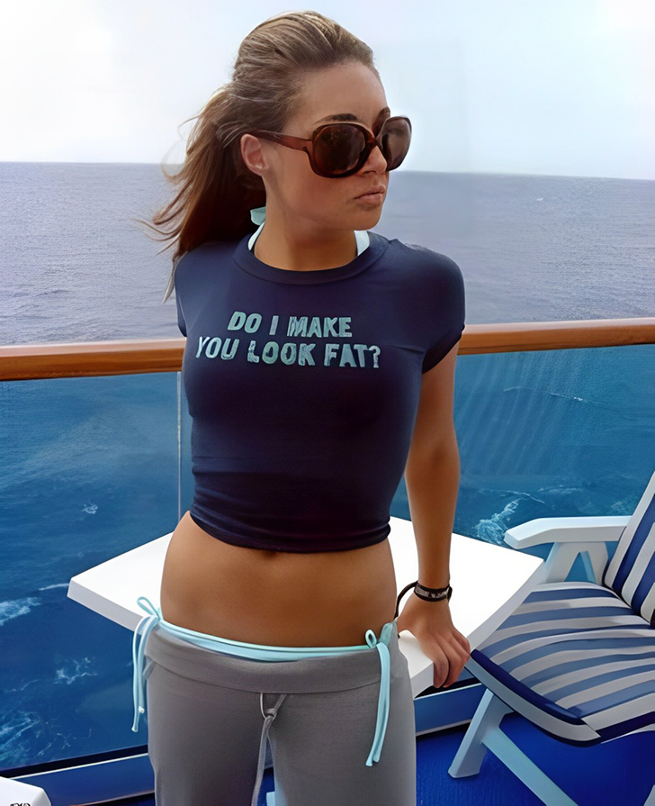 There’s confidence, and then there’s wearing a shirt that picks fights before you even open your mouth. The bold text across this woman’s chest flirts with arrogance unapologetically. She’s flexing with her good looks, but doing it with a question set to offend most people is next-level villain behavior.